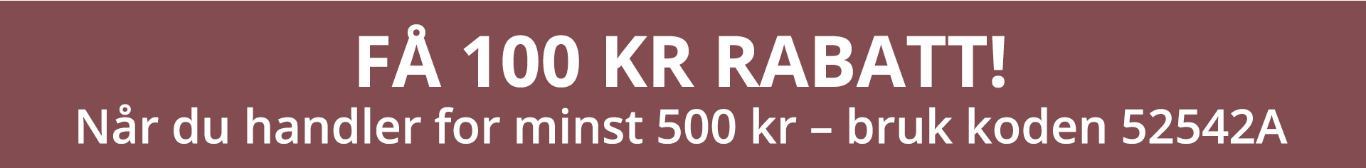 Oppgi kode 52542A når du bestiller. Tilbudet gjelder til og med 27-12-2025 når du handler for minst 500 kr. Gjelder ikke salg. Kan ikke kombineres med andre tilbud.