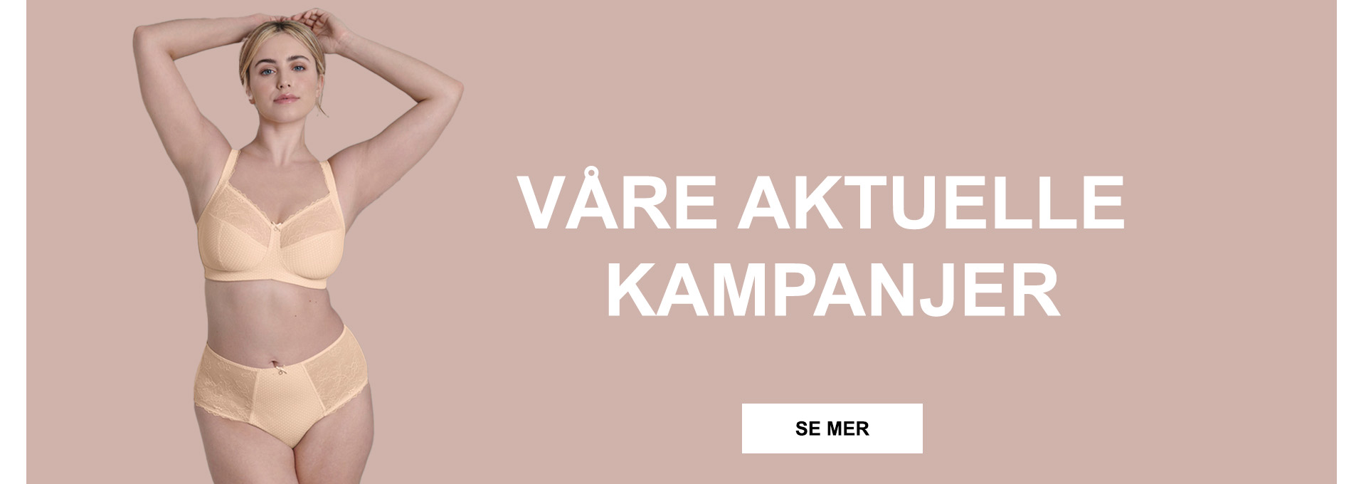 Undertøy som sitter som det skal – uansett størrelse! Vi tilbyr et nøye utvalgt undertøyssortiment i et bredt størrelsesspekter med fokus på både passform og komfort. Hos oss finner du dameundertøy fra merker som Abecita, Miss Mary, Trofé, Anita, Glamorise, Damella, Emilia, inkludert singleter, body, nattøy og inkontinensundertøy.