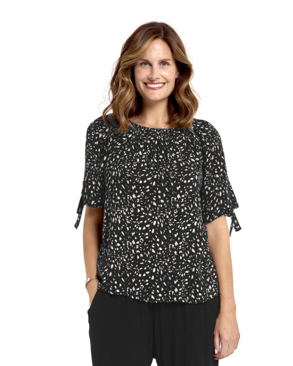 Mønstret topp med knytebånd på ermslutt, Amanda