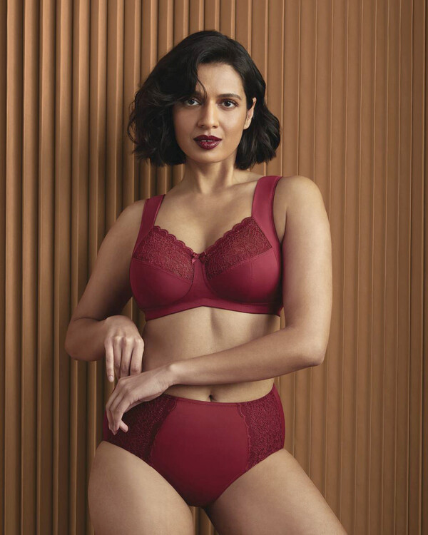 Nydelige Havanna med ekstra brede skulderbånd av den mykeste sorten. Vakker blonde i stretchmateriale samt mykt luftig tyll mellom cupene. 3-delt cup med mikrofiber-charmeuse i undercupen, noe som former og gir ytterligere støtte. Ekstra myke skulderbånd unikt sentrert i ryggen for at de skal sitte på plass og ikke gli ned. 86% polyamid, 14% elastan/mikrofiber. Finvask 40°.