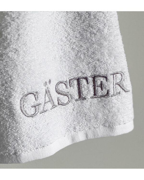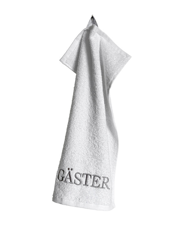 Dekorative gjestehåndklær med brodert tekst gjester. Størrelse: 30x50cm Materiale: 100% bomull, 380g/m Vask: 60°...